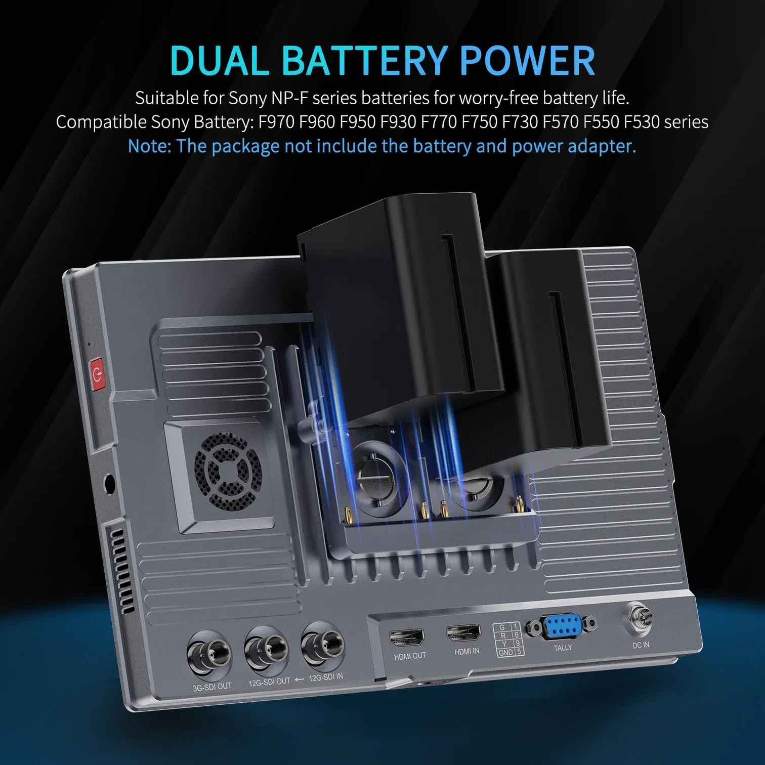 Equipped with 12G-SDI and 4K HDMI inputs and outputs, support up to 4096×2160/60p &3840×2160/60p signal, compatible with professional camcorder and the latest DSLR cameras on the market. In addition, S10 also comes with a 3G-SDI output and provide a 3.5mm headphone jack to monitor audio.