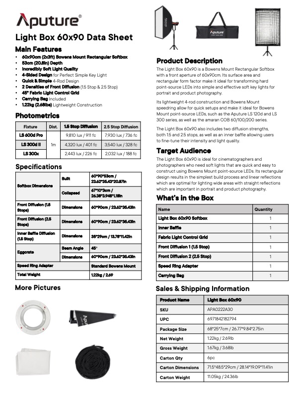 The Light Box 60×90 also includes two diffusion strengths, both 1.5 and 2.5 stops, as well as an inner baffle allowing users to fine-tune their intensity and light quality.