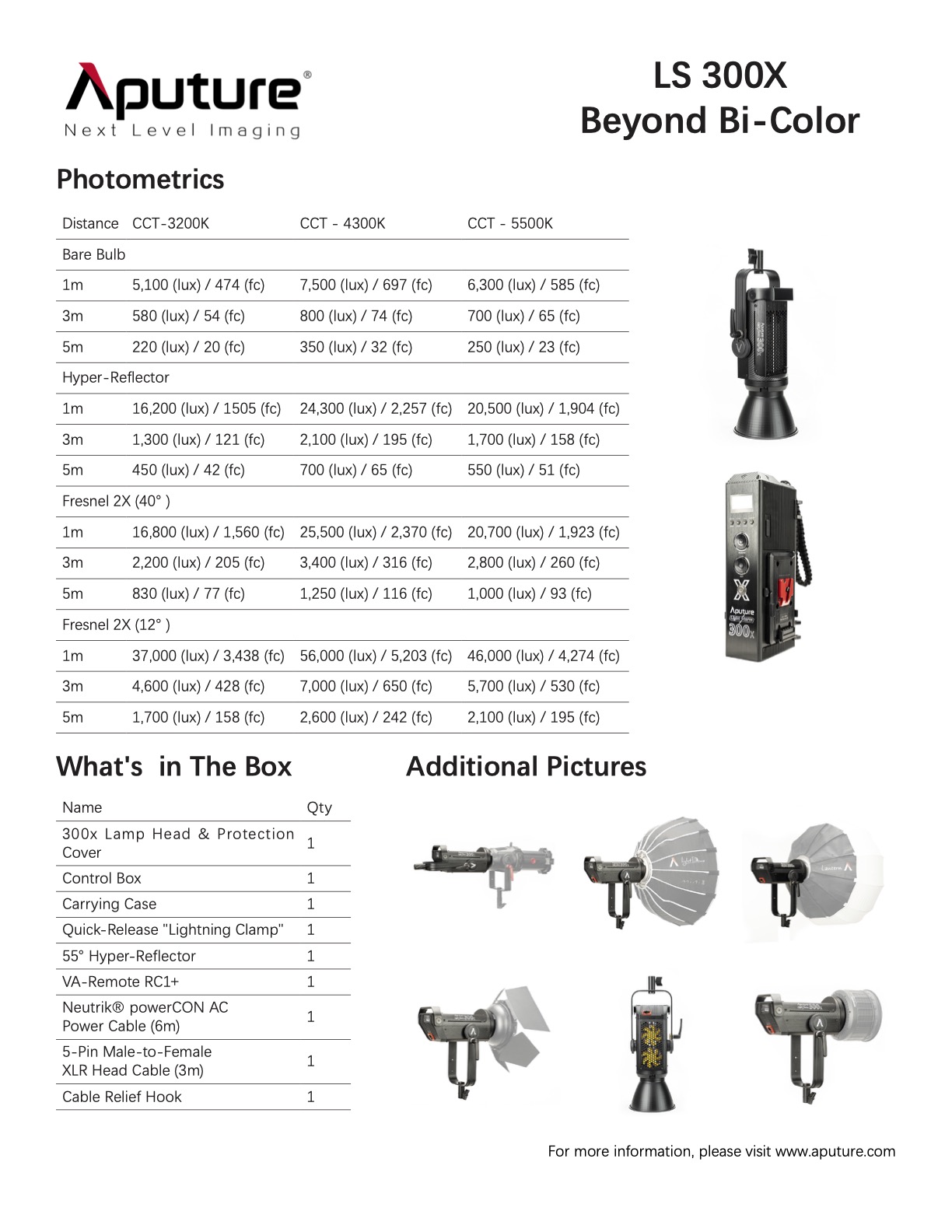 The Light Storm 300x is Aputure’s latest point-source LED and is the first bi-colour Bowens mount light fixture to be compatible with optical lens modifiers. By combining the latest optical colour blending technology with Aputure’s dual-color LED chipset, the LS 300x can utilize the Fresnel 2X and Spotlight Mount to give you unprecedented flexibility from a single fixture. With a simple turn of a dial or press of a button, you can adjust the fixture’s white light CCT output between 2700K-6500K in just seconds. And utilizing the same robust lamp head and control box design as the 300d II, this light is built to handle any filmmaking challenge.