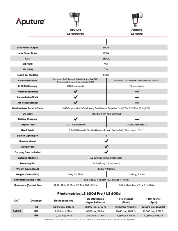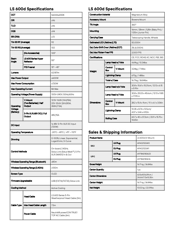 Maintaining multiple control methods and the same multi-voltage battery plates with a lighter weight and more streamlined control box makes the LS 600d a light fixture that truly standardizes access to high-intensity lighting to overpower the sun.