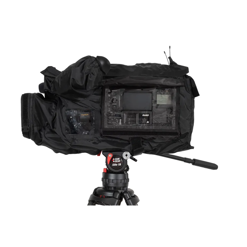 Protect the Sony, Panasonic, Grass Valley, Ikegami, Hitachi and JVC ENG- or EFP-style broadcast camera setup against inclement weather with the rainCover ENG/EFP. It is an absolute must have that will prevent water damage to your most valuable piece of equipment.