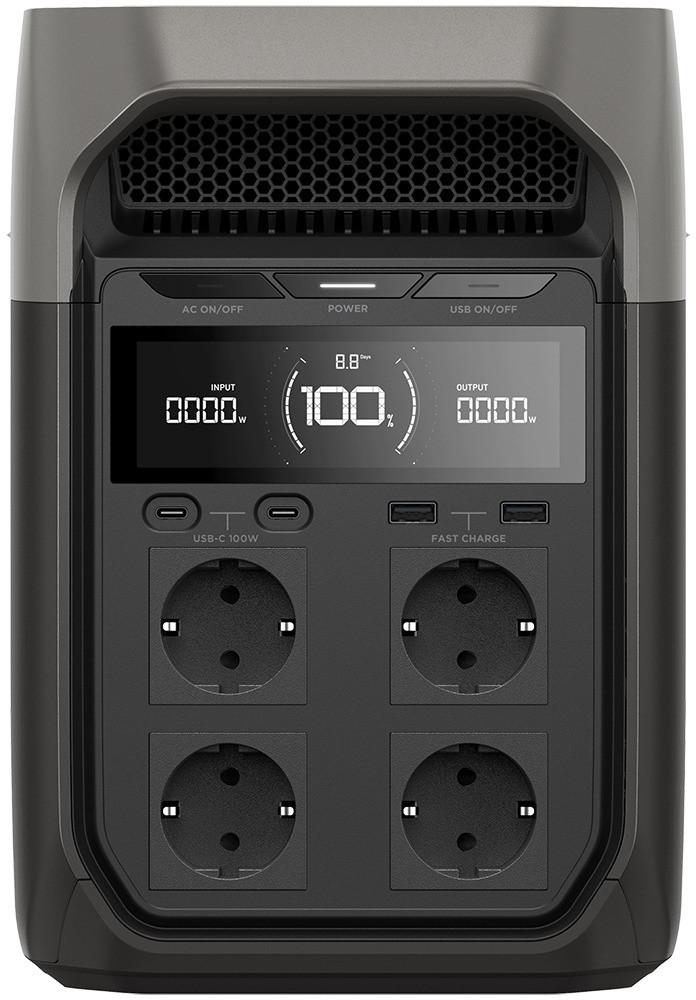 5% smaller than EcoFlow DELTA 2, and about the size of a small microwave oven. Place in the trunk, front passenger seat, or back seat without taking up too much space. It’s lighweight too, weighing as little as the average adult corgi.