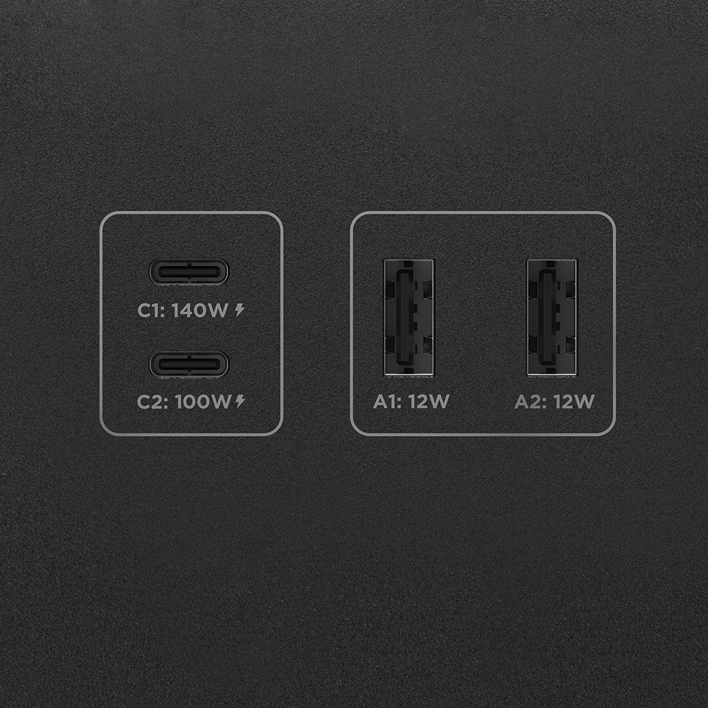 - 2 × USB-C pesa (1 × 140 W + 1 × 100 W)