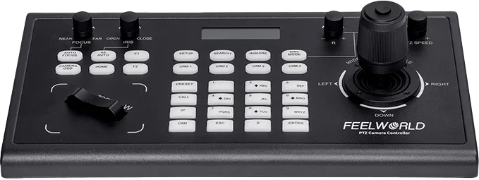 FeelWorldi PTZ-kaamera kontroller KBC10 koos Joystickiga ühildub kõigi PTZ-kaameratega, mis kasutavad ONVIF, IP VISCA, VISCA ja Pelco-D/P jadaprotokolle. Seda saab seadistada Ethernet, RS-232 DB-9 ja RS-422 5-poolse terminalipordi kaudu, et juhtida kuni 255 kaamerat. See võib juhtida kaameraid üle keerdpaarikaabli kuni 1188 m kauguselt.
