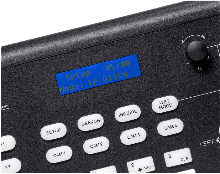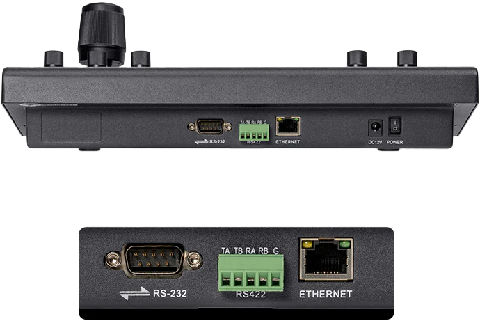 Juhtpaneelil on 4D-joystick, kaameravaliku nupud, suumimisnupp, fookuse, iirise ja kiiruse nupud ning LCD-staatuseekraan. On isegi programmeeritavad nupud, et määrata kasutaja otseteed. Kontrollerit saab toita kaasasoleva toiteadapteri kaudu või toetatud võrgu kaudu PoE kaudu.