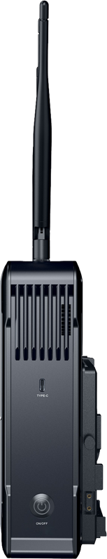 The receiver features 2 x SDI/HDMI outputs (one for each transmitter) for connecting to a monitor or switcher. You can also connect the receiver to a LAN, allowing you to pass control signals from a control panel to the transmitters. This enables you to control PTZ cameras as well as send tally information. The transmitters have a dedicated tally output port. Both units also have an OLED display that confirms the resolution, transmission channel, signal strength, and other details such as battery power. The transmitters each have a built-in L-series battery plate, and the receiver has a V-mount battery plate. Both Transmitter and receiver feature a 2-pin power input for extended run times.