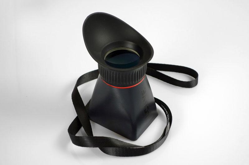Blocks all ambient light and magnifies the LCD screen by 220% to aid in focusing.