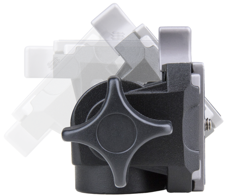 Made by die-cast aluminum, the tilt head features a 3/8”-16 female threaded on the bottom for mounting on the monopod and the tilt head allows the camera to be turned 90° to provide either vertical or horizontal format with one locking lever. In addition, the quick release mounting plate allows you to quickly and easily switch from handheld to monopod to tripod. The unlocking lever also keeps it from accidentally unlatching the platform.