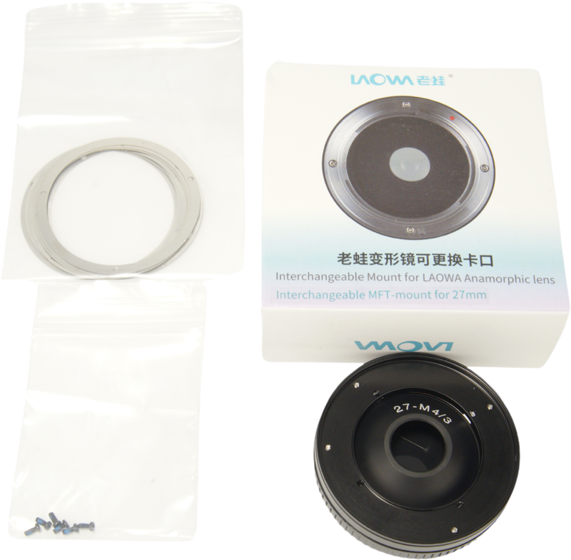 The interchangeable bayonet mount is designed to easily replace the original mount on your 27mm T2.8 anamorphic lens. The included hardware kit makes it easy for the end user to replace the mount.