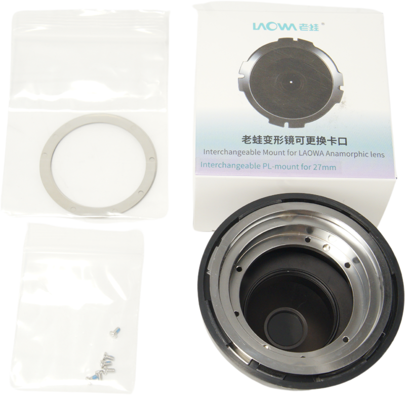 The interchangeable bayonet mount is designed to easily replace the original mount on your 27mm T2.8 anamorphic lens. The included hardware kit makes it easy for the end user to replace the mount.