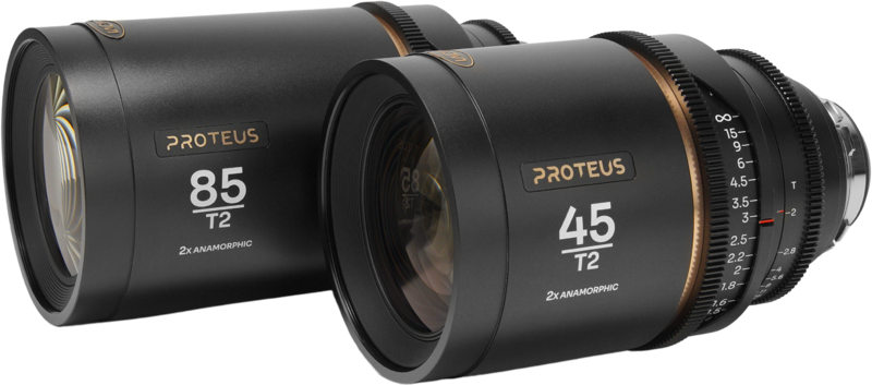 The Proteus 45mm T2 lens offers filmmakers a natural and versatile angle, perfect for medium-wide scenes, narrative storytelling, and expressive portraiture. Complementing it, the Proteus 85mm T2 lens is ideal for tight close-ups, intimate scenes, and beautifully rendered portraits with striking subject separation. Both lenses feature a bright T2 aperture, delivering superior low-light performance and precise depth-of-field control for achieving cinematic aesthetics across various shooting conditions.