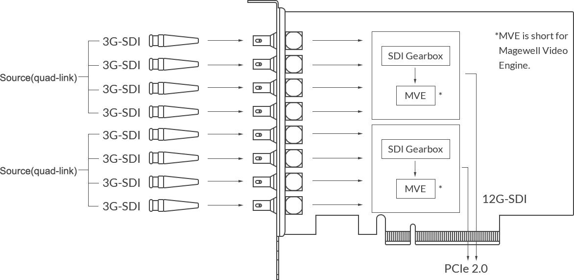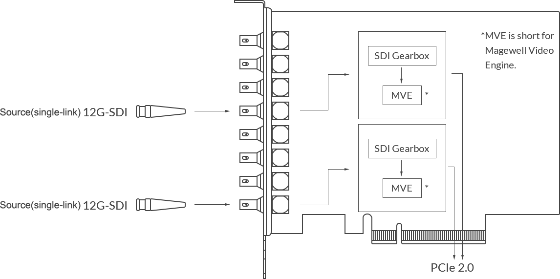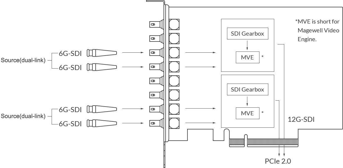The Magewell Pro Capture Dual SDI 4K Plus is a High-performance, low-latency PCIe capture card. This Two-channel 4K PCI card captures two 12G-SDI signals in either a Single-link 12G-SDI, Dual-link 6G-SDI, or Quad-link 3G-SDI connecting method. The Magewell Pro Capture SDI 4K Plus supports input resolution up to 4096×2160 pixels.