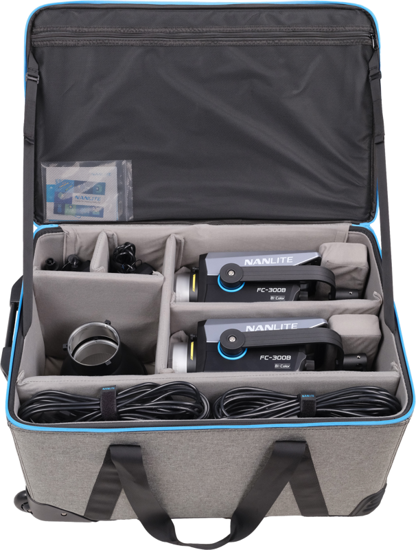 The Nanlite FC-300B 2-Light Kit features AC-powered, bi-color LED spotlights that deliver immense brightness in a compact, lightweight, and stylish design. Perfect for professional setups, this kit combines power and portability, making it an ideal solution for both studio and on-location lighting needs.