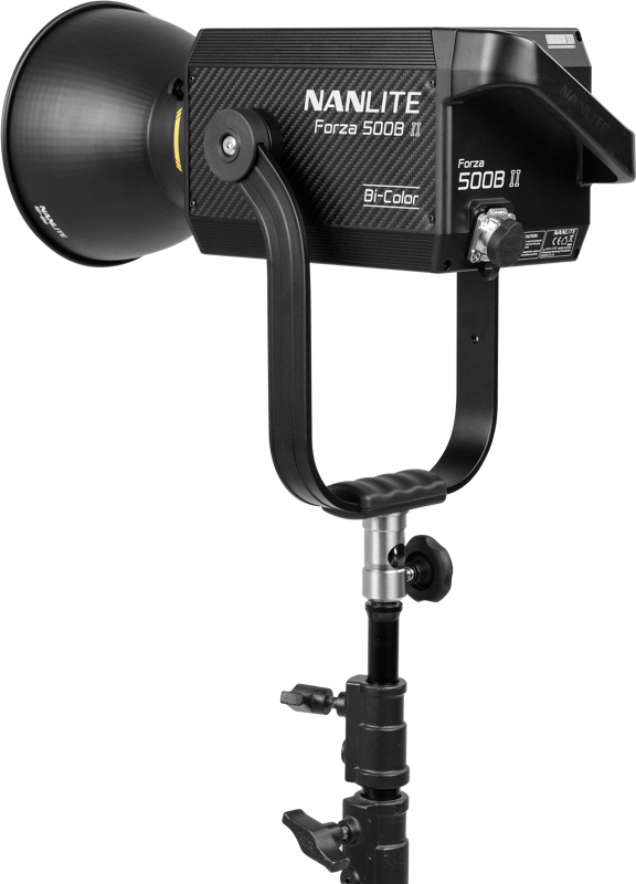 The Nanlite Forza 500B II Bi-Color LED Spotlight provides all of the outstanding benefits of the Forza 500 II – like the lightweight and compact head, redesigned Control Unit, and exceptionally powerful output – and also has the versatility of an adjustable CCT range of 2700K–6500K. It was built for professional production with durable construction, control options for Bluetooth, 2.4G, and DMX/RDM, and a protected, frosted-glass covered COB. The upgraded Control Unit can run efficiently on AC or side-mounted 26V or 14.4V-14.8V V-Mount batteries (sold separately). You can have complete confidence in its performance as the 500B II provides highly color-accurate light, and it also gives you the ability to adjust the green-to-magenta shift by +/- 80, which is made possible by its WW(RG) LED source and light-mixing chamber.