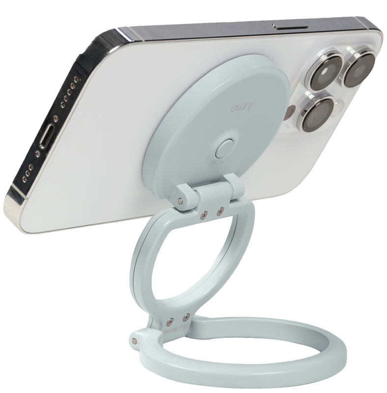 Whether you’re traveling, vlogging, or just want to look your best in every call — the Mint Blue lumo delivers light, flexibility, and flair.