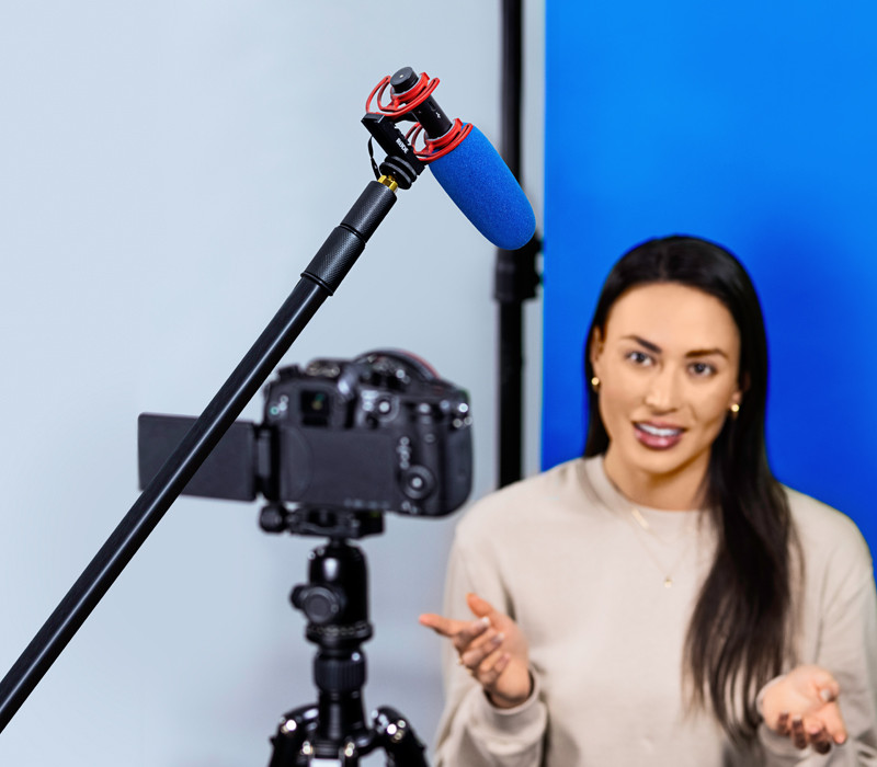 WS-Chroma is a set of two foam windshields for the VideoMic NTG coloured blue and green, making them suitable for chroma keying. The coloured foam enables the microphone to be placed in the frame and closer to the talent for optimal sound quality. Chroma key compositing can then be used to remove the microphone from the image.
