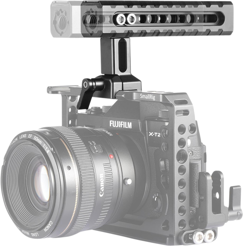 A sliding top handle for moving shoots.It is designed for quick release attaching and detaching on the camera without screws