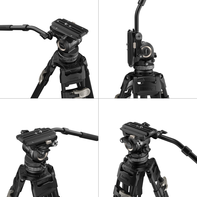 The adjustable 4-step hydraulic damping system enables swivel and tilt adjustment and provides smooth pan and tilt camera movements.