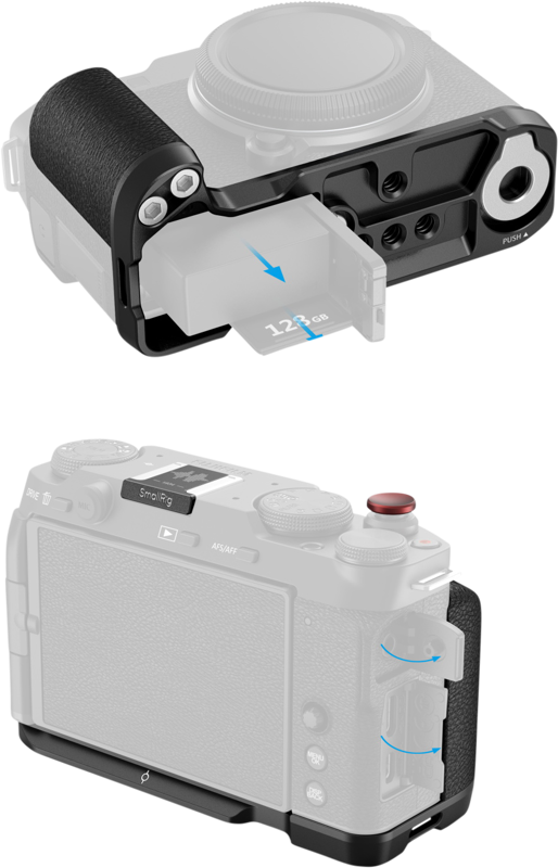 Designed to improve the camera grip. The texture and color of the grip perfectly match with FUJIFILM X-M5. The built-in Arca-Swiss quick-release baseplate allows for easy and fast Arca-type tripod assembly and disassembly.