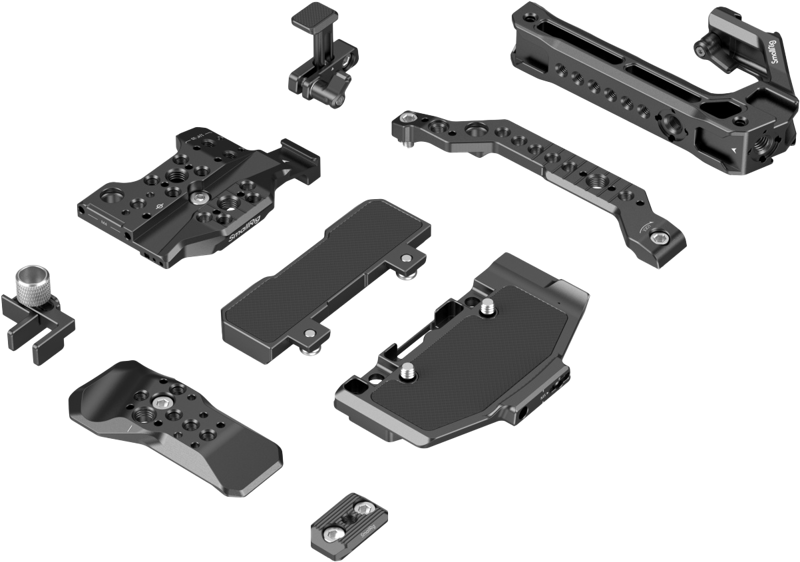 Its modular design supports customizable setups, while its various mounting interfaces—1/4″-20 and 3/8″-16 threaded holes, 1/4″-20 locating holes, ARRI 3/8″-16 locating holes, M3 threaded holes, cold shoe mounts, H21 NATO rails, and QD sockets – allowing for compatibility with SmallRig side handles, magic arms, monitor mounts, baseplates with dual rod clamps and follow focus rod clamps.