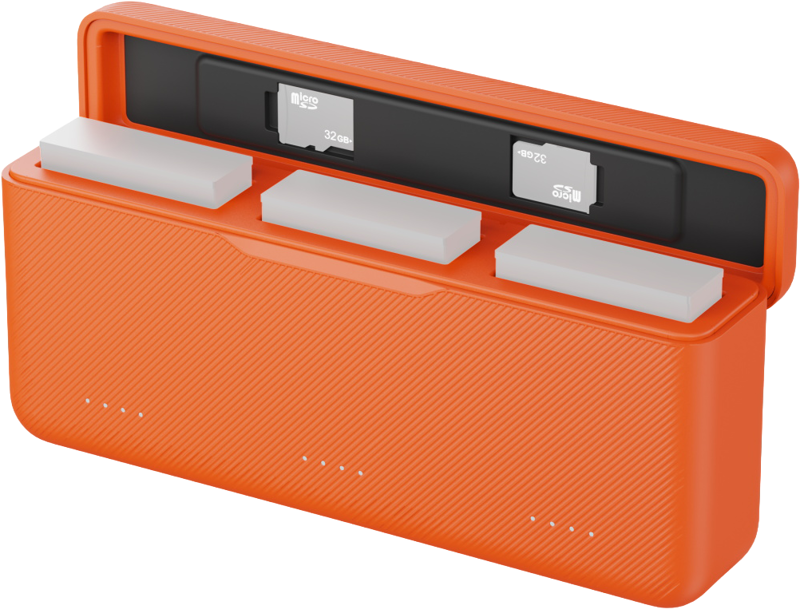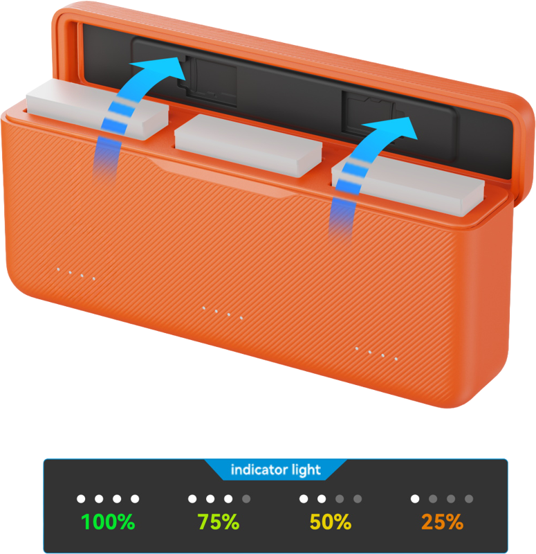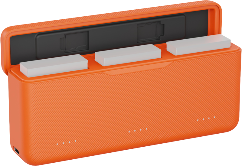 A high-efficiency battery charger designed specifically for DJI Osmo Action 6 / Action 5 Pro / Osmo 360. It supports input from 5V to 12V power adapters and features three battery slots, enabling simultaneous charging of three batteries through a smart queue system.