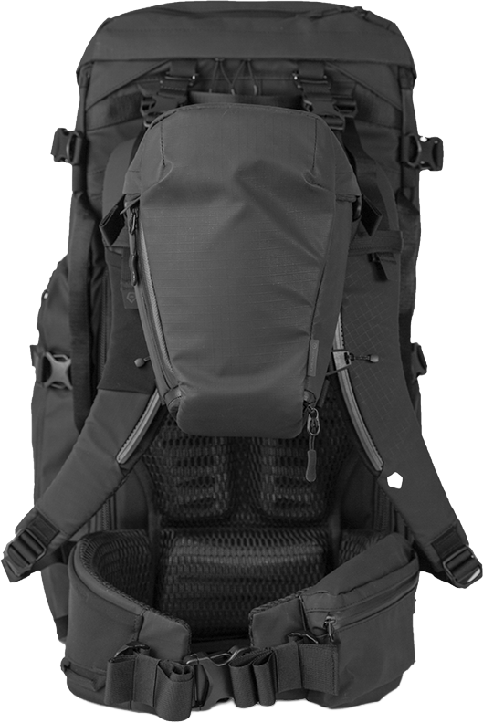 The ROUTE Chest Pack provides front-body camera access for active photographers. It is designed for hiking, biking, and situations where accessing a camera from a backpack is impractical.