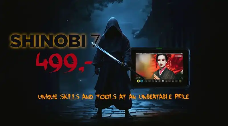 SHINOBI 7 näkee sen, minkä muut eivät huomaa. Seitsemän tuumaa. Täydellinen hallinta. Valotus, tarkennus, väri – kaikki yhdessä paikassa, ei arvailua. Sisäänrakennetut työkalut.