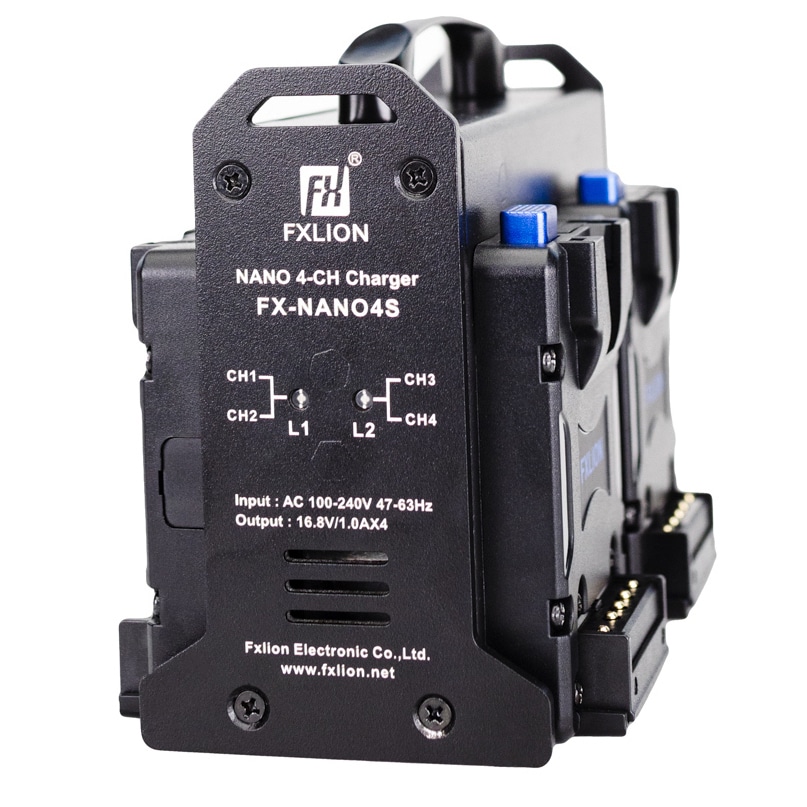 FXLION 4 channel charger for Sony NP-F & Panasonic D54 batteries