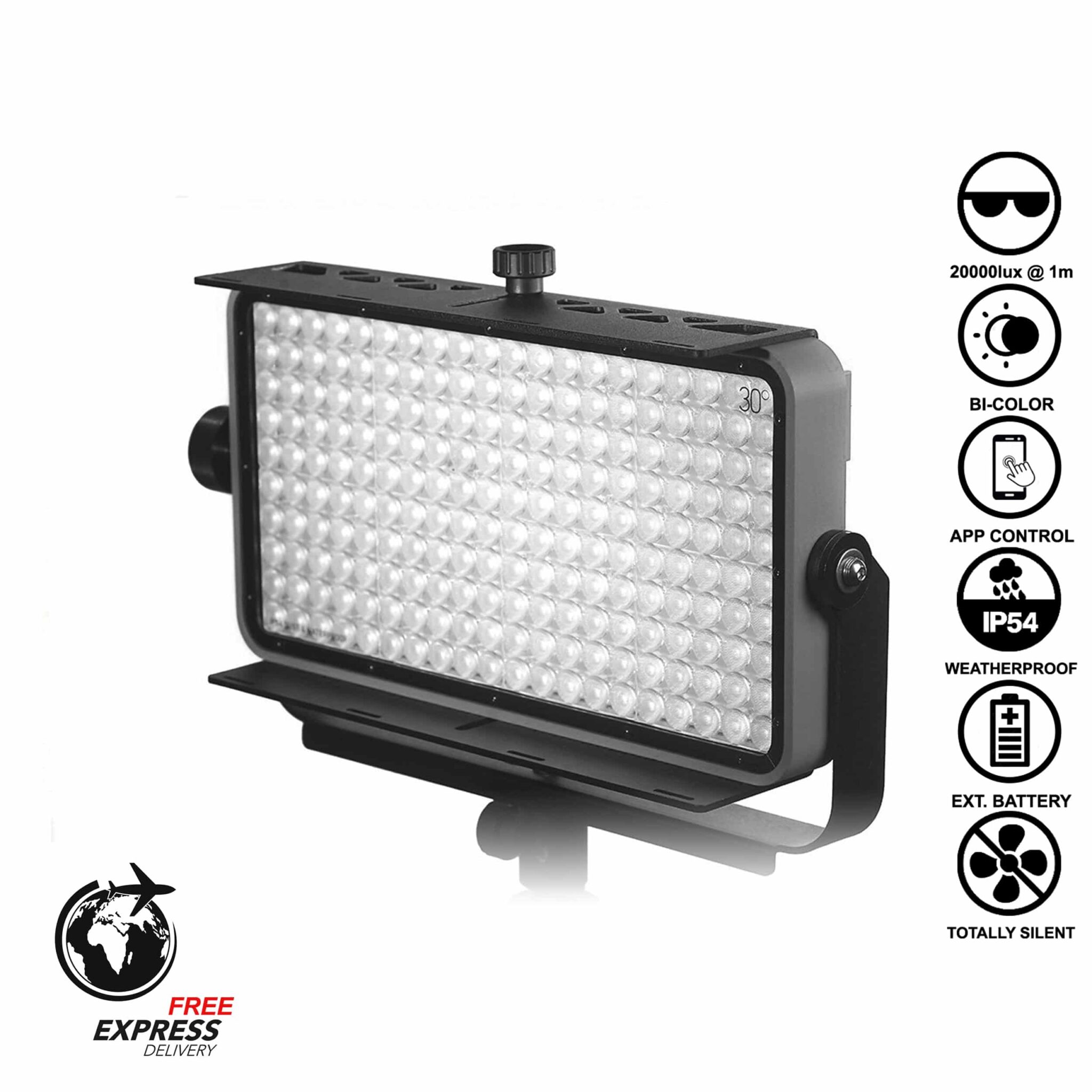 From tungsten to daylight and any lighting situation in between, you just dial in the matching color balance and tune the brightness manually or from your smartphone. Sophisticated software ensures that power output is linear regardless of color temperature, while the CRI rating also remains consistent at 97, an indication of accuracy in color rendition. Light intensity is variable from 5% to 100% and can be adjusted locally on the fixture or remotely via DMX.