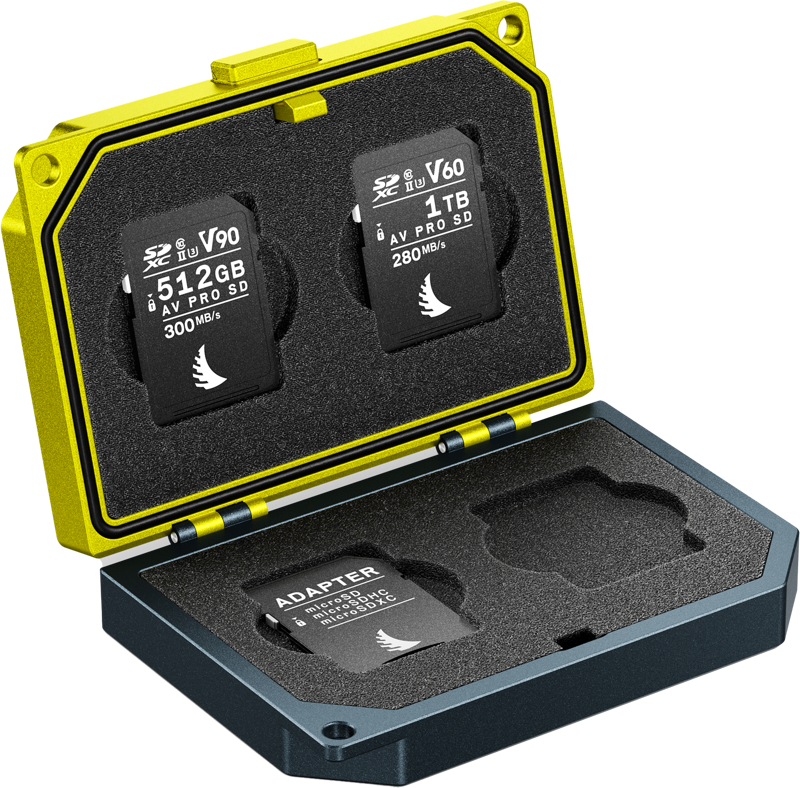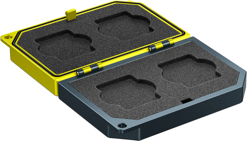 Angelbird´s hard-aluminum case is designed for storing and transporting up to 4 memory cards.