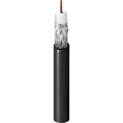Low Loss Serial Digital Coax, Riser-CMR, Ultra-miniature, RG-179/U, 28.5 AWG solid bare copper conductor, foam HDPE core, Duofoil, + 95% tinned copper braid, PVC jacket.