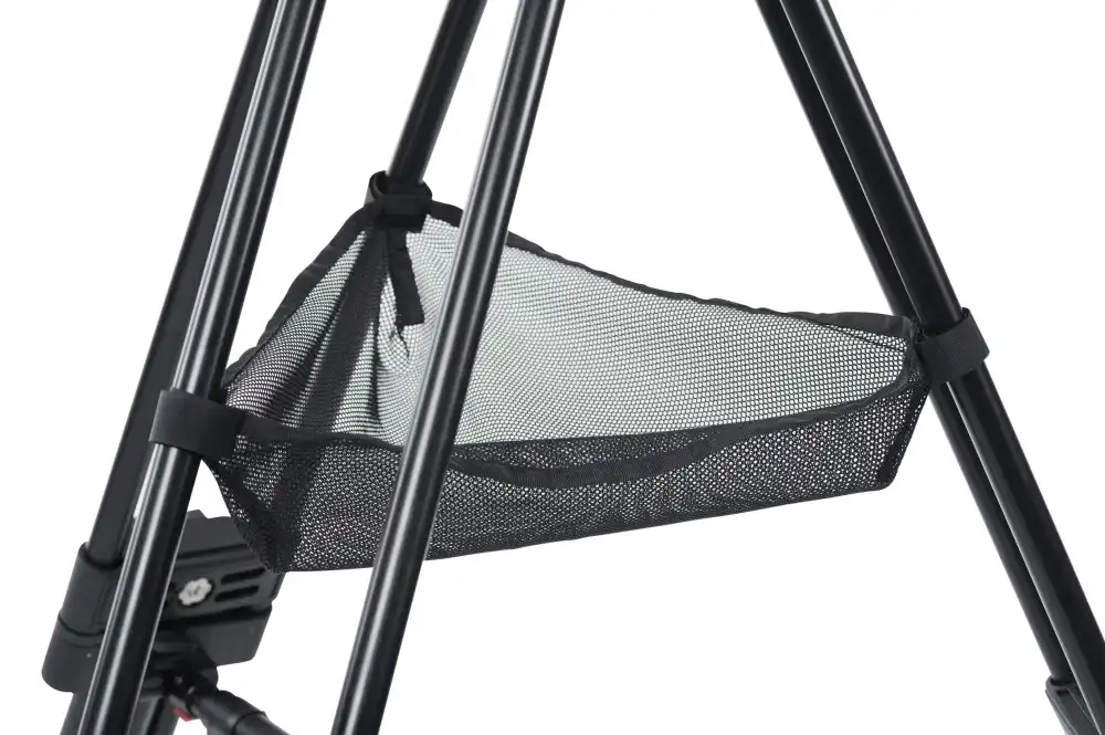 A strong and smooth running wheel set is added to the bag for minimum strain when traveling. Also included is a small mesh fabric basket you can attach between the tripod legs for easy access to small items/tools during your shoot.