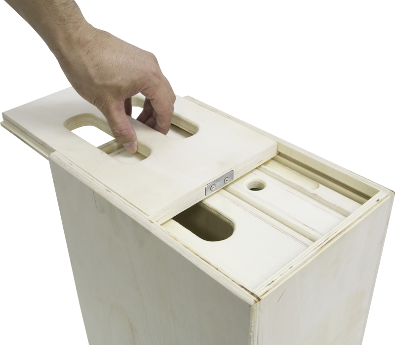 They come in four standard sizes that are fractions of a standard full apple box which is 20″ x 12″ x 8″. Two halves make a full, four quarters make a full and eight pancakes make a full. The 10cm 1 Nesting Apple Box Set features a pancake, quarter and half apple box all stored within the full apple box, a removable side panel that slides in place and is secured by two strong magnets, 9-ply Baltic Birch construction, central bracing for strength and durability, rounded edges that are easy on the hands and a natural finish.