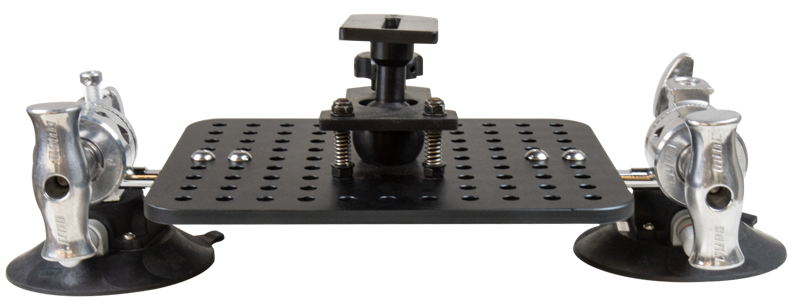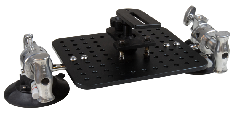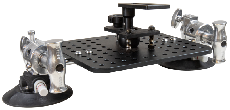 Double Flat plate with two 3/8″-16 female threads (spaced 1″) and bolts can be fixed on standard cheese plate with 5/8″ baby pin in a horizontal position.