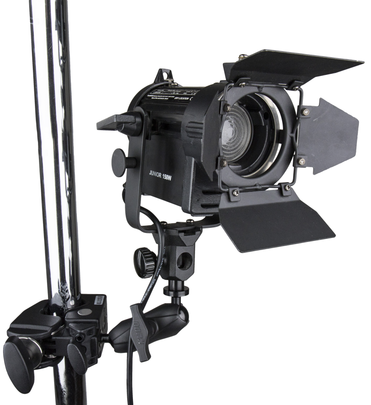 Features an aluminum 5/8″ (16mm) baby pin which allows mounting of a lighting fixture or any equipment. Comes with a 5/8″ (16mm) baby receiver on the super knuckle. The 1/4”-20 female thread is on the top of the baby pin.