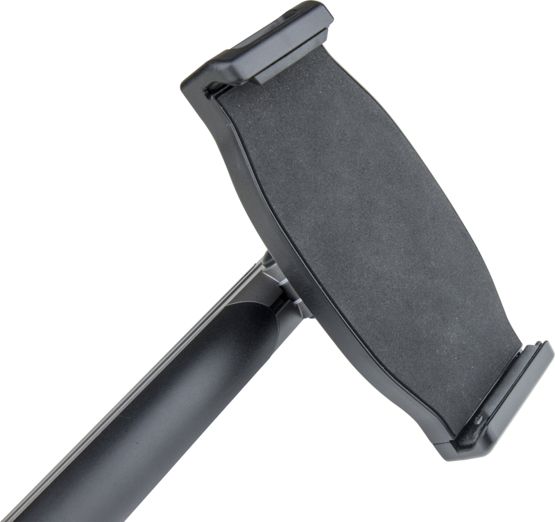 With highly flexible 15” aluminum long arm which is super rigid for various rotation & folding maneuvers, this tablet holder provides a great tablet mounting solution on a stand and Super Convi Clamp. The unique cable management design allows the cable to be put inside the arms which not only protects your power cable against damage but also serves as a great storage area. Rubber padding added on the bracket holder guarantees scratch-free protection on your gadgets. 360° Swivel Tablet holder design makes it easy to rotate from landscape to portrait. The Allen wrenches are also included and well stored inside the arm. The desk mount clamp adapter is also included while desk mount is required.