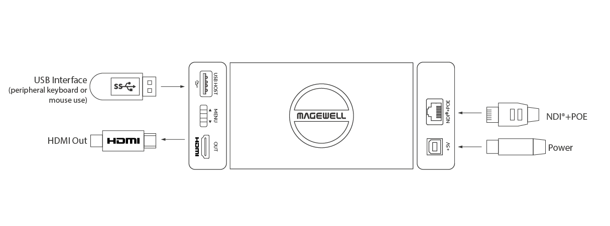 The Magewell Pro Convert for NDI® to HDMI 4K converts a live NDI® stream with embedded audio into 4K HDMI signal. Decode NDI streams up to 4K 60fps into HDMI output up to 4096×2160 60fps at ultra low latency.