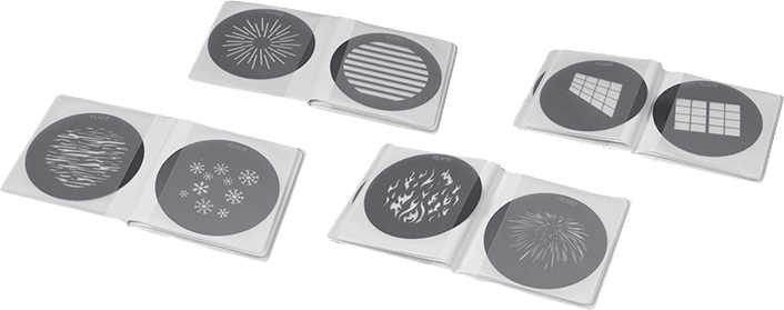 AS-GB-A-SET2NL Mount Projection Attachment Gobo Set 2This set includes 10 pieces of A size gobo, which can be inserted into the NL mount projection attachment 15-30° gobo holder.