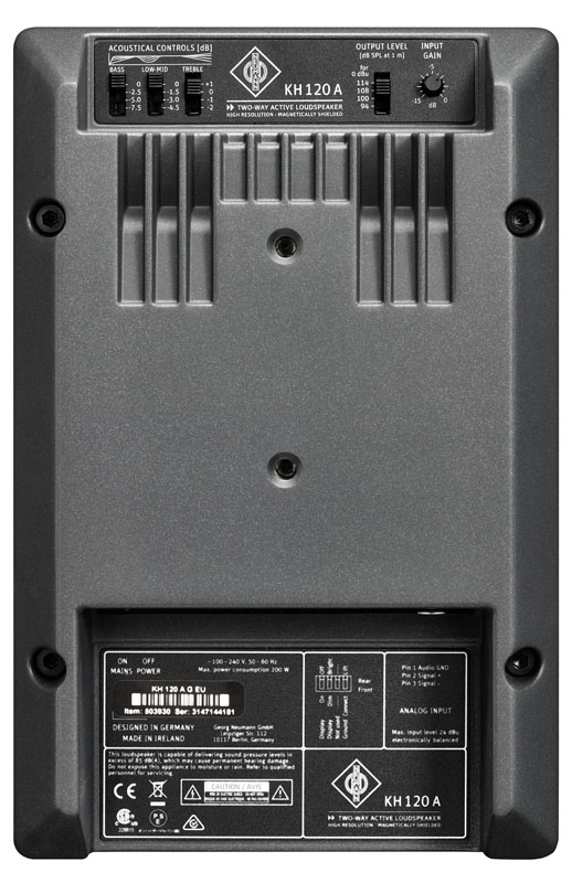 The KH 120 A is the first in a new line of Neumann studio monitors. It is designed for ”nearfield” applications, i.e. mainly for close listening. However, it can also be used as a rear or effect speaker in multi-channel systems.