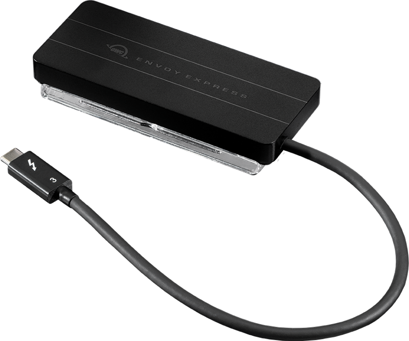 **Gets Onboard With Macs And Pcs ** Today’s office is often a tiny bistro table, your lap in a remote location, or a cramped airplane seat. There’s no power outlet in most modern work locations, and not enough room for an external drive. But wherever you’re booting up to get stuff done, Envoy Express has you covered. Besides being the industry’s first Thunderbolt 3 bus powered enclosure, the Envoy Express is the first to include a removeable slide-mounting system.