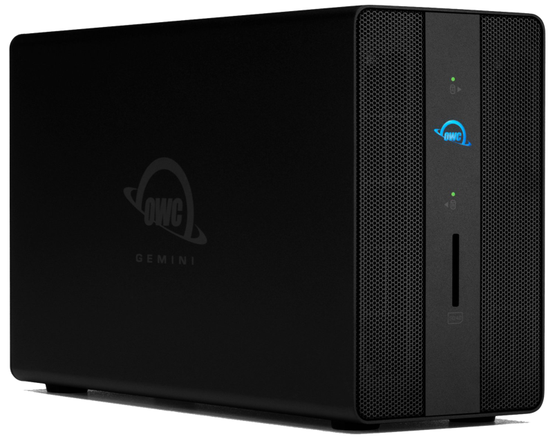 The Do-It-All Tool for Digital Workflows With dual drive bays and seven connectivity ports including an SD 4.0/UHS-II media slot, the OWC Gemini is the do-it-all tool that will organize your digital life. You’ll have plenty of room to duplicate footage, create and manage archives, or render and process effects. Connect your favorite peripherals via USB ports. Ingest the day’s shoot or drone footage with the frontside reader.