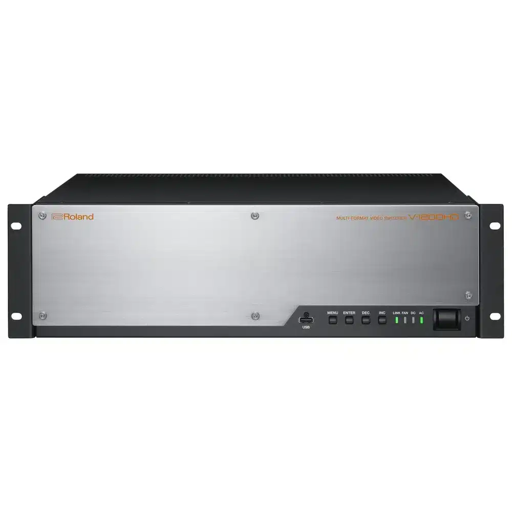 The Roland V-1200HD Multi-Format Video Switcher is a 2 M/E switcher featuring a new 4:2:2 / 4:4:4 Hybrid Engine that combines the features of a production switcher with the power of a presentation switcher. Multiple M/E configurations can be selected from 1 M/E, 1.5 M/E and 2 M/E to meet the needs of your production. Inputs include 10 3G/HD-SDI and 4 HDMI with 6 3G/HD-SDI Outputs and 2 HDMI outputs. Scalers on HDMI inputs 3 & 4 and HDMI outputs support SD, HD and VESA resolutions. Switch using the V-1200HDR Control Surface or free downloadable Remote Control Software (RCS). The video inputs and the powerful built-in 16-channel audio mixer can be expanded with XI-Series video and audio expansion cards. An intuitive user interface with assignable cross-points and on screen names ensures maximum flexibility for and live production or broadcast.