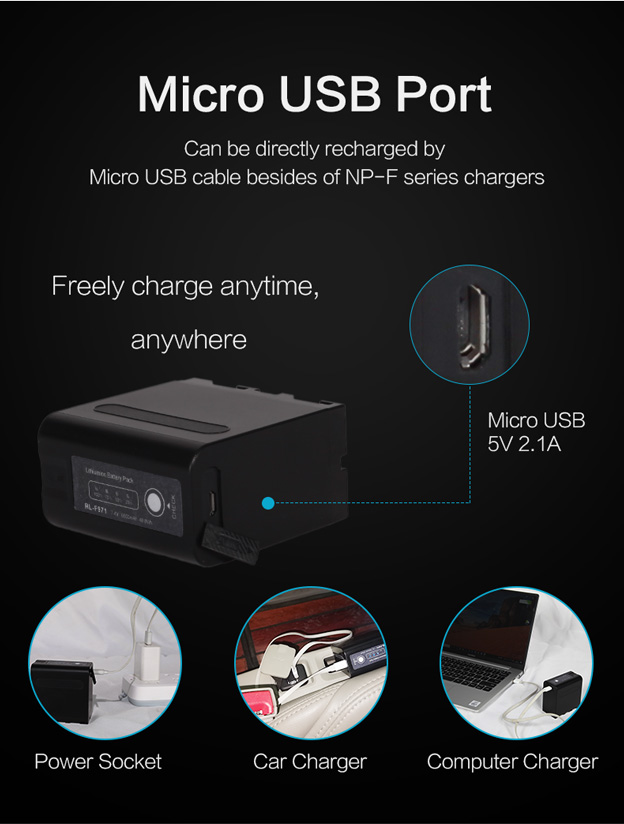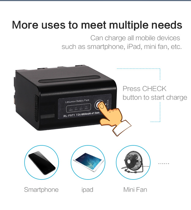 ROLUX YC-F971 battery for Sony NP-F series, 6600mAh, USB in/out