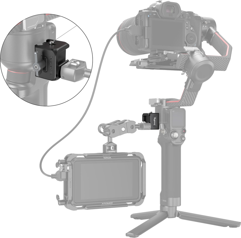 Featuring a 1/4″-20 threaded hole and an ARRI 3/8″-16 locating hole allow the attachment of a monitor with a SmallRig Magic Arm 2115, as well as 2163 for action camera so that you can have two camera views.