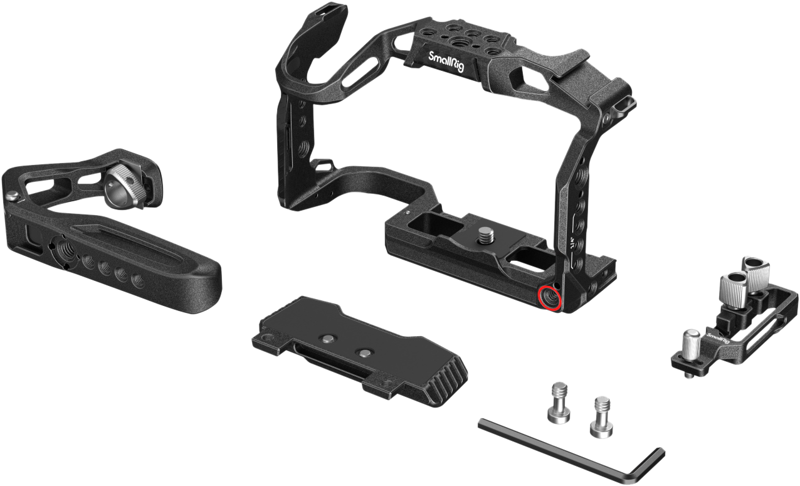 Designed to protect the camera, and provide a comfortable low-angle shooting experience and accessory mounts. It includes an ARRI top handle, a full cage, and a dedicated cable clamp.
