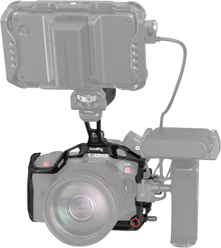 The “Black Mamba”-style cage, which fits EOS R5 C elements, gives full access to camera top buttons and consists of a front cage and a detachable extended baseplate, combined to provide various shooting solutions.