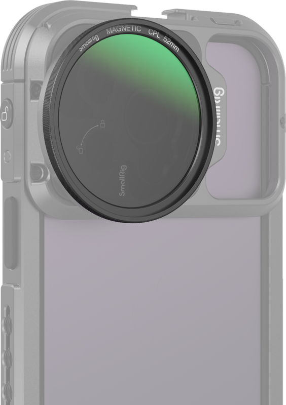 It can be magnetically and securely attached to SmallRig 52mm magnetic filter adapter ring.