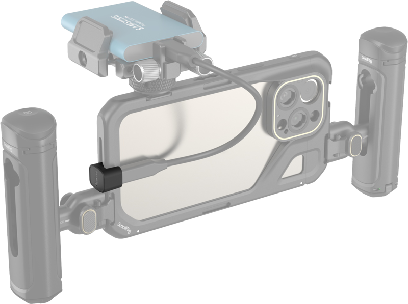 Transfers the Type-C signal and power interface of the mobile phone to the side of the mobile phone, so that the mobile phone is connected to the side handle to do landscape shooting without interfering with the use of microphone, SSD hard disk or power supply.