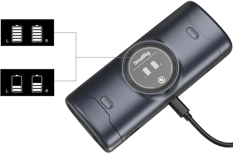 The high-definition display clearly indicates the battery level for each channel, even when disconnected from power, ensuring you’re always aware of the remaining charge. If battery levels drop critically low, the battery icon will flash, alleviating low-battery anxiety during shoots.
