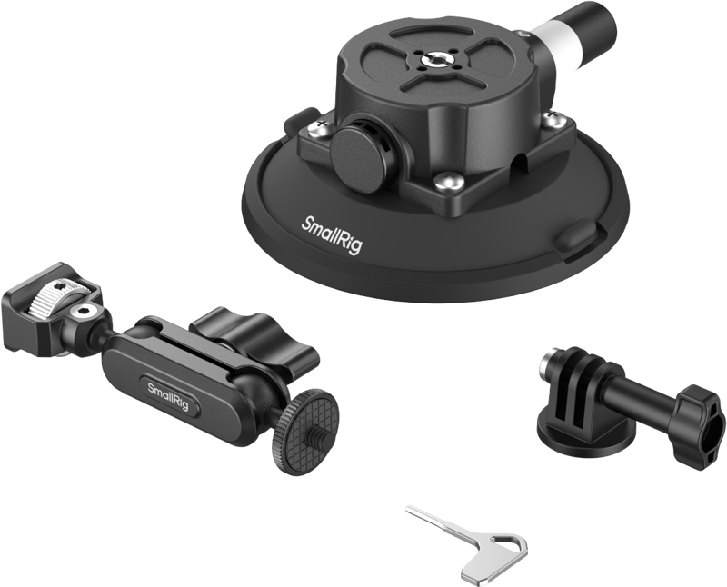 Consists of three components: a 4.5-inch suction cup, a magic arm, and an action camera mount. The suction cup is made from durable nitrile rubber, offering robust wear resistance and excellent sealing performance across extreme temperatures (-20°C to 60°C)